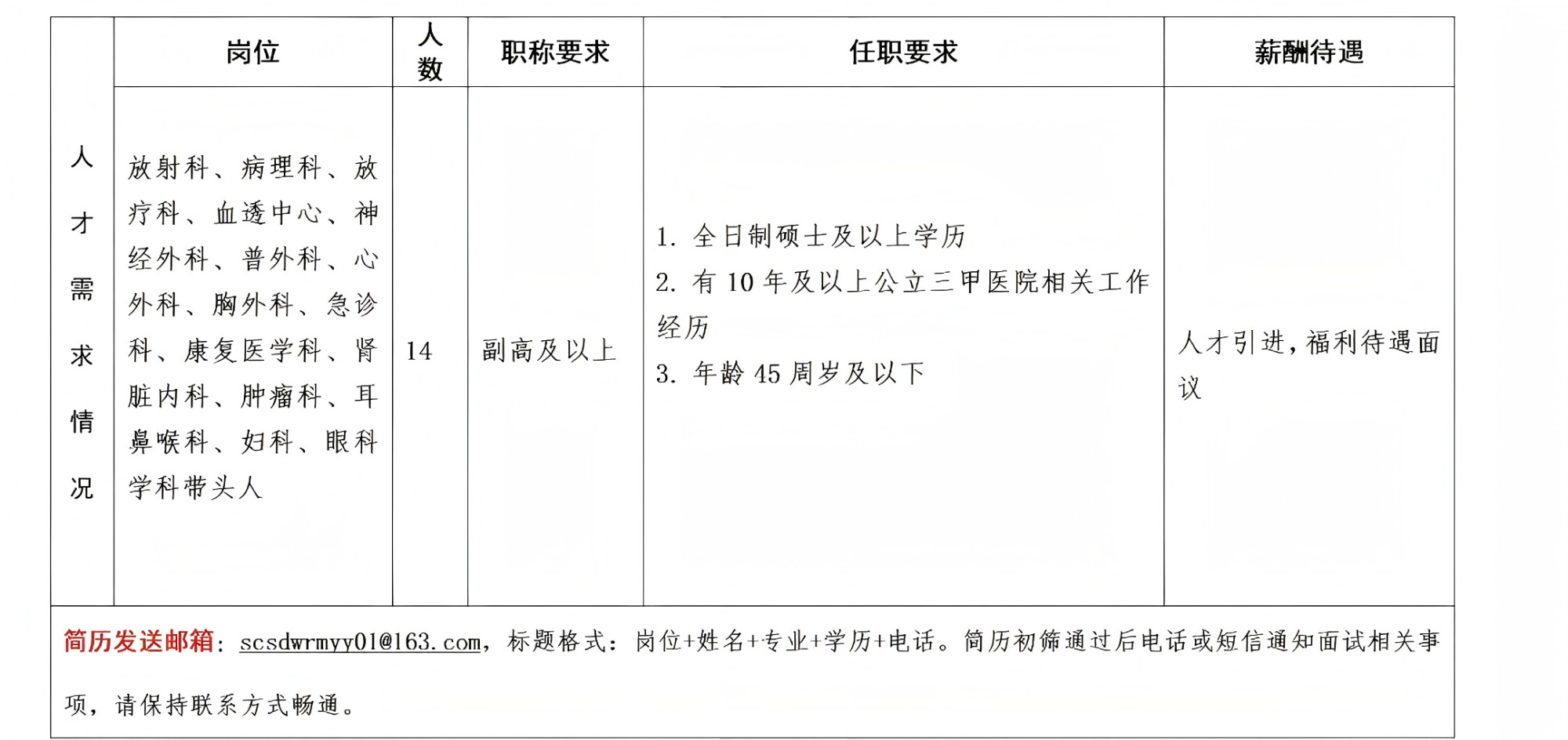 我院金牛院区计划于2027年底投运,拟面向社会招聘以下高层次人才: