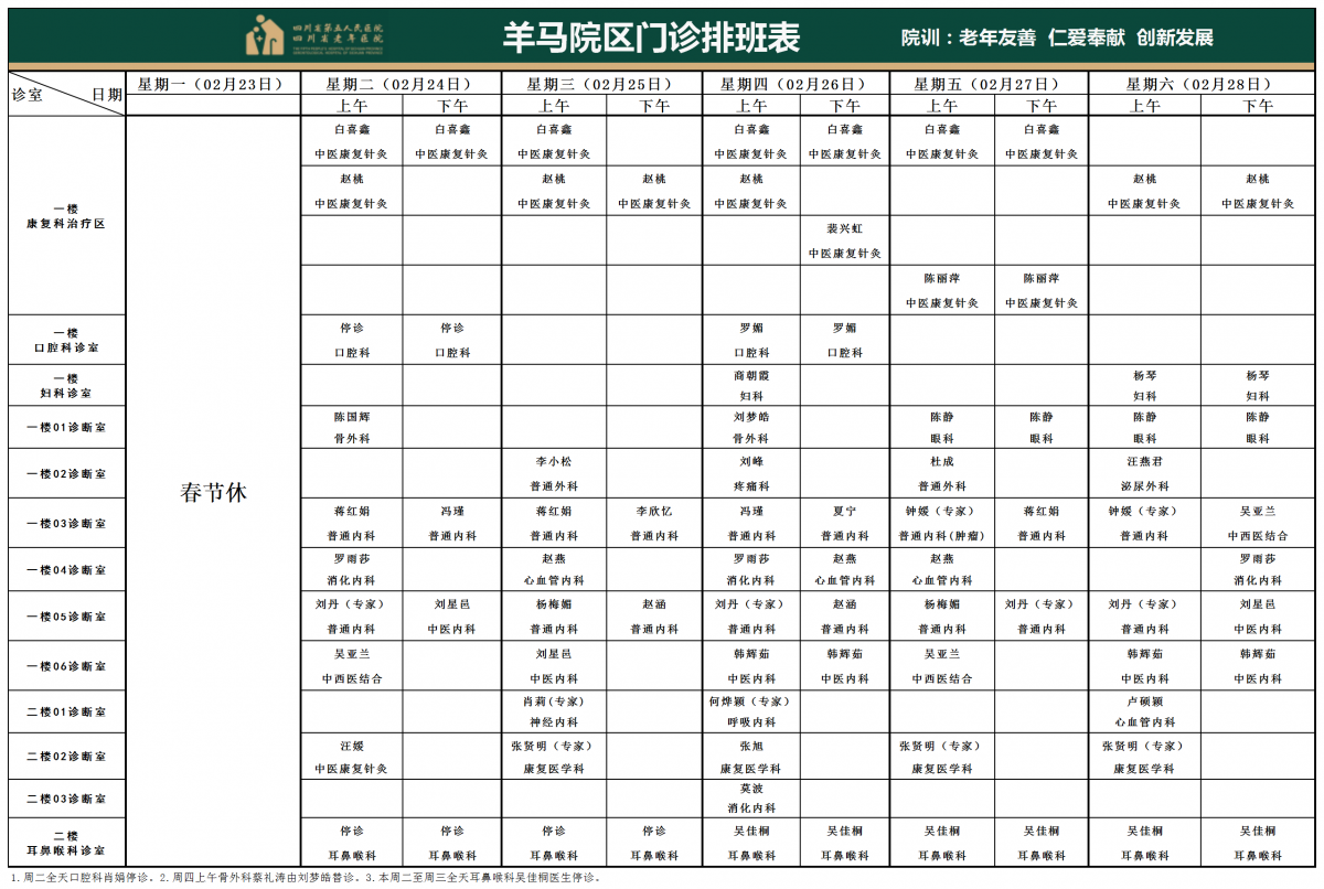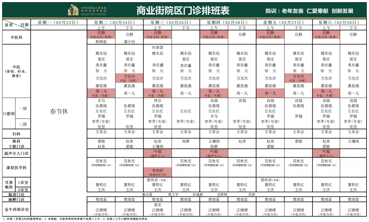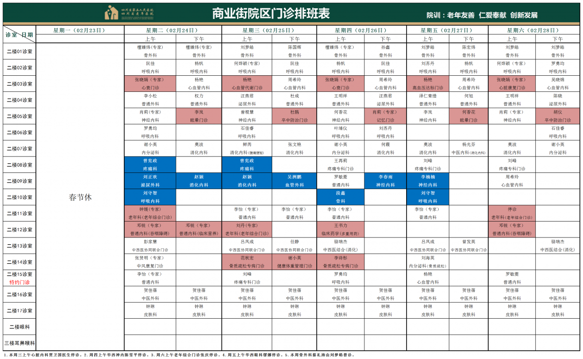 门诊排班表