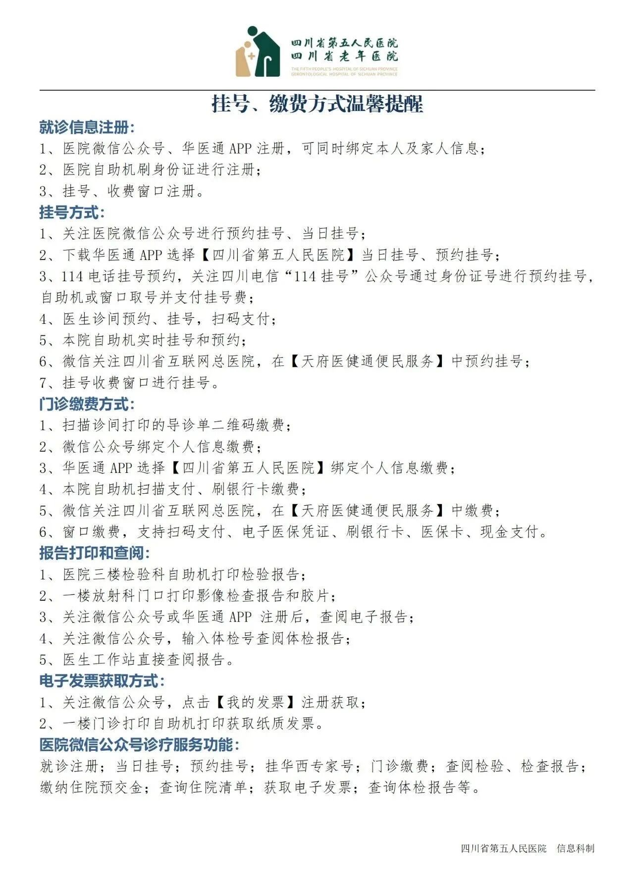 挂号、缴费方式