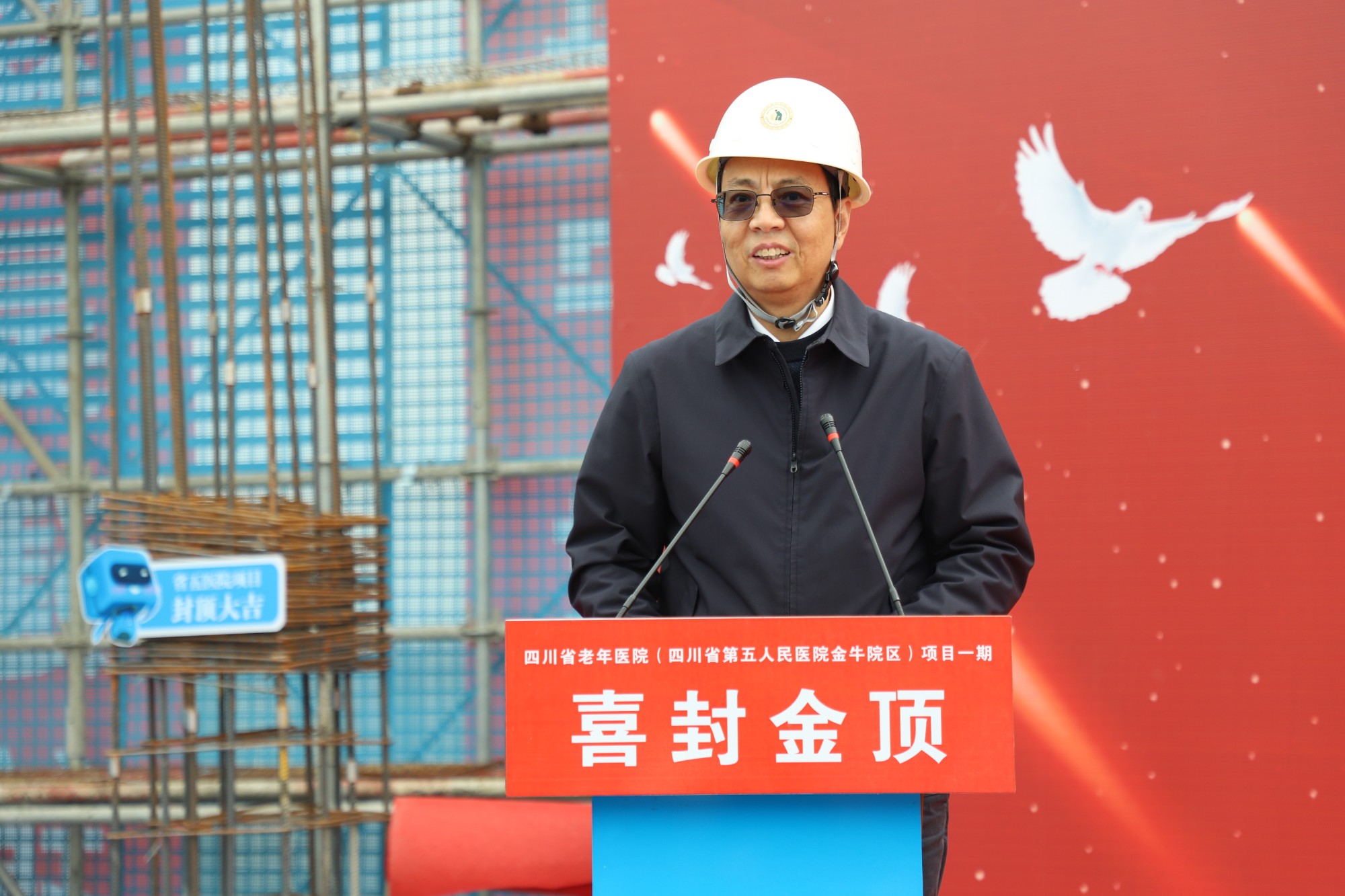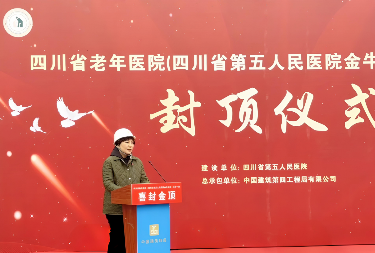 贾卫国书记宣布,四川省老年医院(四川省第五人民医院金牛院区)项目一期正式封顶!
